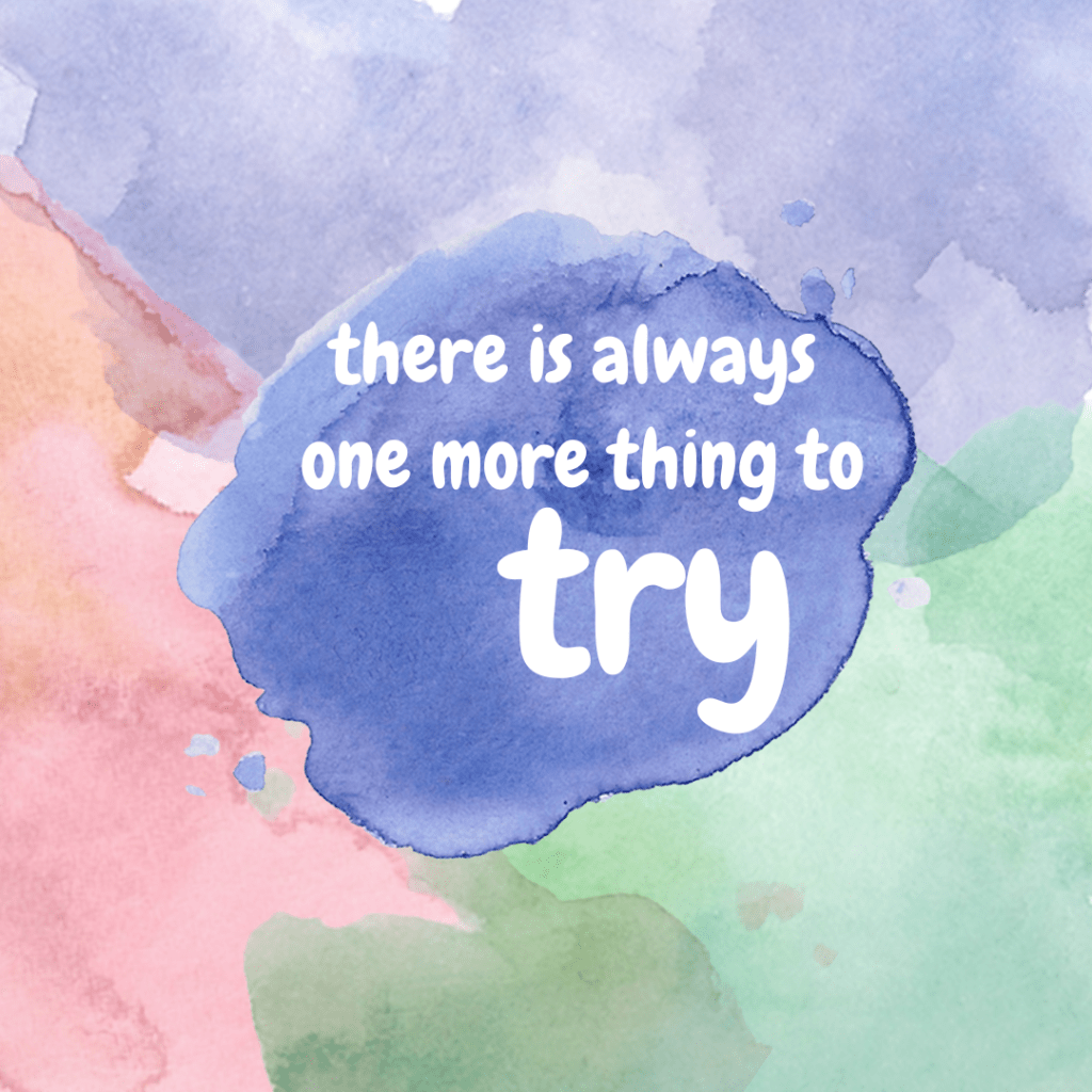 In past moments of feeling broken and alone, I came up with this phrase. As long as I have one more idea, one more thing I can try, one thing to look forward to, as small as it might be, there is hope. There is a path forward.